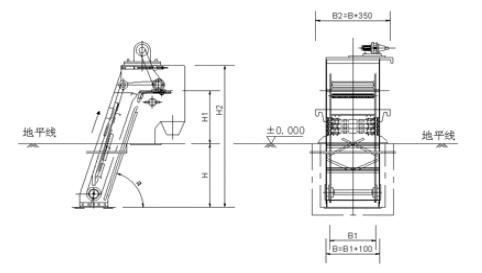 XY回轉(zhuǎn)式機械格柵是由耙齒裝配成一組回轉(zhuǎn)格柵鏈。在電機減速器的驅(qū)動下經(jīng)鏈輪傳動驅(qū)耙齒鏈,進(jìn)行回轉(zhuǎn)運動。耙齒鏈的下部浸沒于排水溝槽中,當(dāng)耙齒鏈運轉(zhuǎn)到設(shè)備的上部時,由于槽輪和彎軌的導(dǎo)向,使每組耙齒之間產(chǎn)生相對自清運動,絕大部分固體物質(zhì)靠重力落下。另一部分則依靠清掃器的反向運動把粘在耙齒上的雜物清掃干凈。按水流方向耙齒鏈類同于網(wǎng)柵,在耙齒鏈軸上裝配的耙齒間隙可以根據(jù)使用條件進(jìn)行選擇。當(dāng)耙齒把流體中的固態(tài)懸浮物分離后可以保證水流暢通流過。整個工作過程是連續(xù)的,也可以是間歇的。